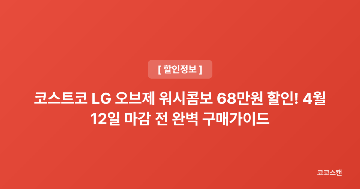 코스트코에서 LG 오브제 워시콤보가 68만원 할인 중이며, 4월 12일까지 회원 전용 행사로 진행됩니다. 스펙, 장단점, 구매 시 주의사항을 정리했습니다.